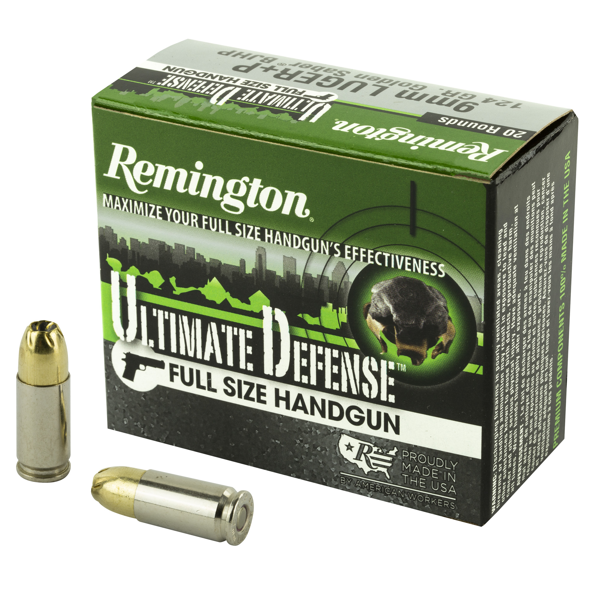 Remington Ultimate Defense - 9MM+P - 124 Grain - Brass Jacketed Hollow Point - 20 Round Box 28948