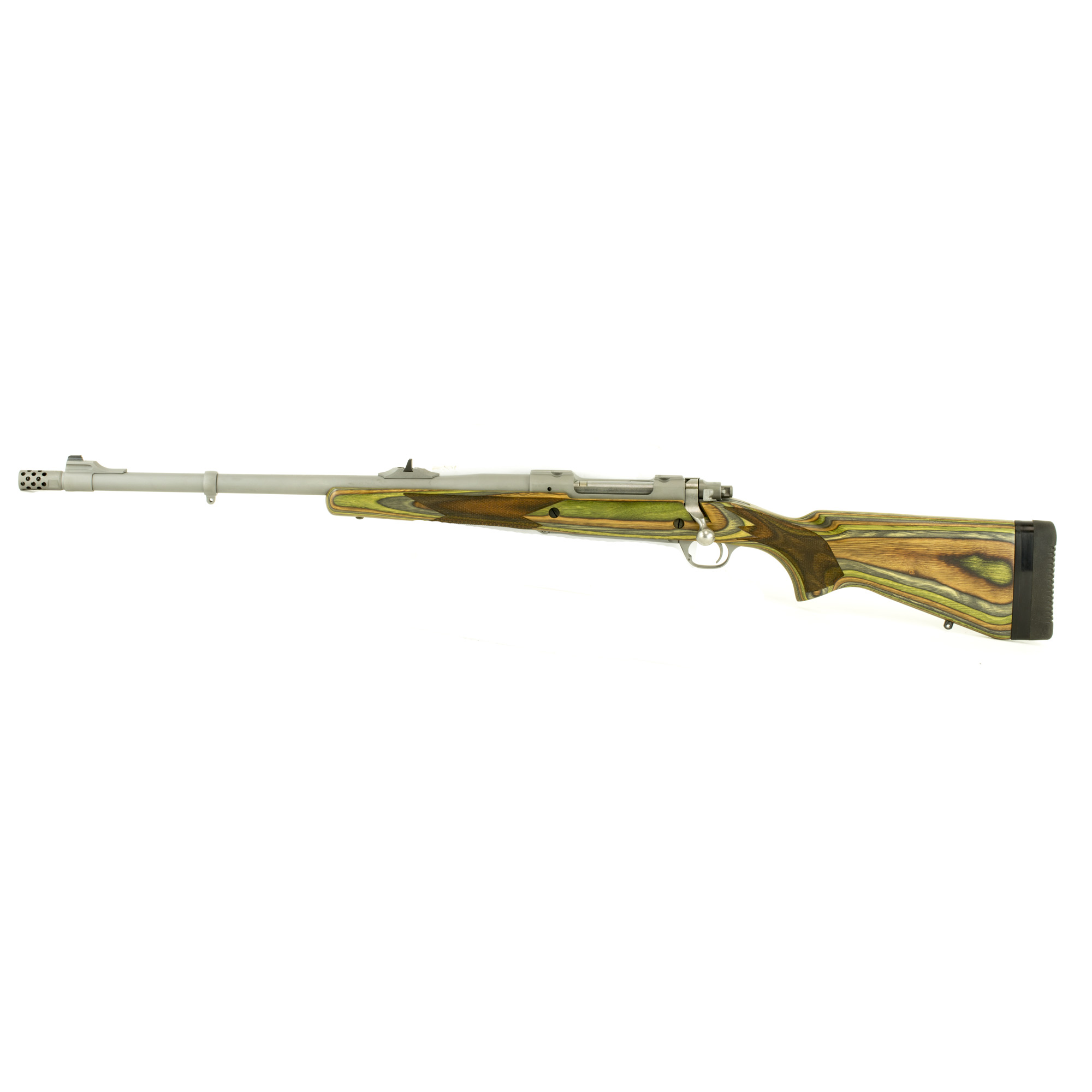 Ruger Guide Gun Left-Handed - Bolt-Action Rifle - 375 Ruger - 20" Barrel - Hawkeye Matte Finish - Stainless Steel - Green Mountain Laminate Stock - Adjustable Rear & Bead Front Sight - 3Rd - Includes Scope Rings 47124